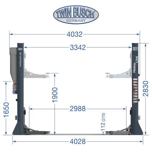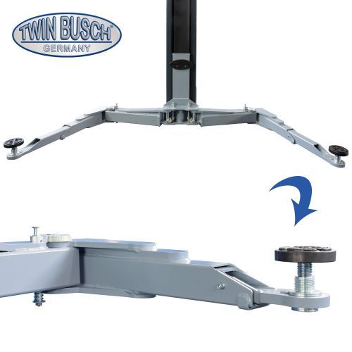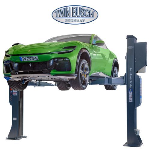 Elevatorul Heavy‑Line TW250W‑G, cu o capacitate de ridicare de 5,0 t, este echipat cu brațe portante telescopice simetrice, cu dublă articulație, design cu Brațe-M, oferind performanță ridicată īn segmentul elevatoarelor cu 2 coloane.