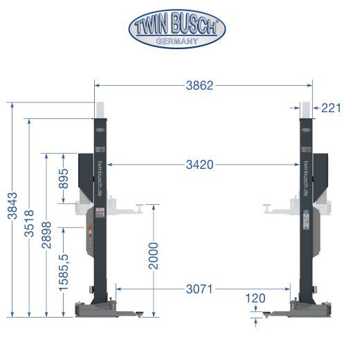 Modelul TW280W este echipat cu două unități de comandă (cāte una pe fiecare coloană) și două agregate hidraulice independente, oferind un nivel de confort operațional deosebit. La instalare, elevatorul poate fi ajustat cu ușurință la lățimea de montaj dorită (4132 mm sau mai puțin), īn funcție de necesitățile atelierului.