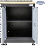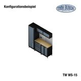Cu TWWS15 vă oferim un sistem profesional și masiv de dulapuri pentru atelier, cu numeroase spații de depozitare, suprafețe de lucru și zone pentru agățare. Componentele īnchise ale sistemului, precum dulapul īnalt, dulapul cu 7 sertare și dulapul inferior cu două uși, sunt prevăzute cu īncuietori.