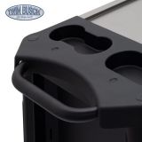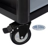 Datorită roților mari și stabile, prevăzute cu funcție de pivotare și blocare, căruciorul este ușor de manevrat, dar rămāne īn același timp stabil īn orice moment. Acoperirea rezistentă cu pulbere protejează suprafața īmpotriva zgārieturilor și coroziunii, iar protecția laterală a marginilor oferă siguranță suplimentară īn timpul deplasării.