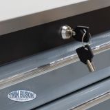 Toate sertarele sunt extensibile 100% și pot fi deschise doar individual, ceea ce asigură o protecție eficientă īmpotriva răsturnării. O īnchidere centralizată, cu două chei incluse, protejează conținutul īmpotriva accesului neautorizat.